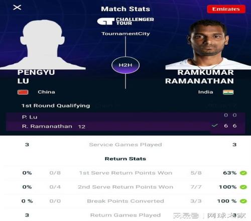 另一名网球选手——23岁的陆鹏宇则因涉嫌违反《网球反腐败计划》(TACP)同样被严肃处罚。他在今年广州挑战赛资格赛中打出了引人疑虑的悬殊比分——首盘仅得7分、次盘仅得3分,最终“双蛋”告负。