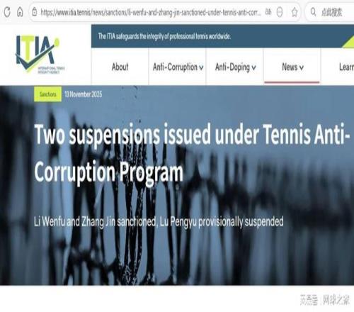 ITIA成员包括ATP、WTA、ITF、四大满贯赛事主办方等全球主要网球机构。作为维护职业网球诚信的独立机构,ITIA表示此类制裁旨在“推动并守护职业网球赛事的诚信”。