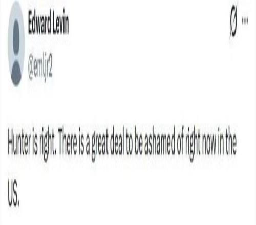 “亨特说得对。当下的美国确实有太多令人羞愧的事情。”↓